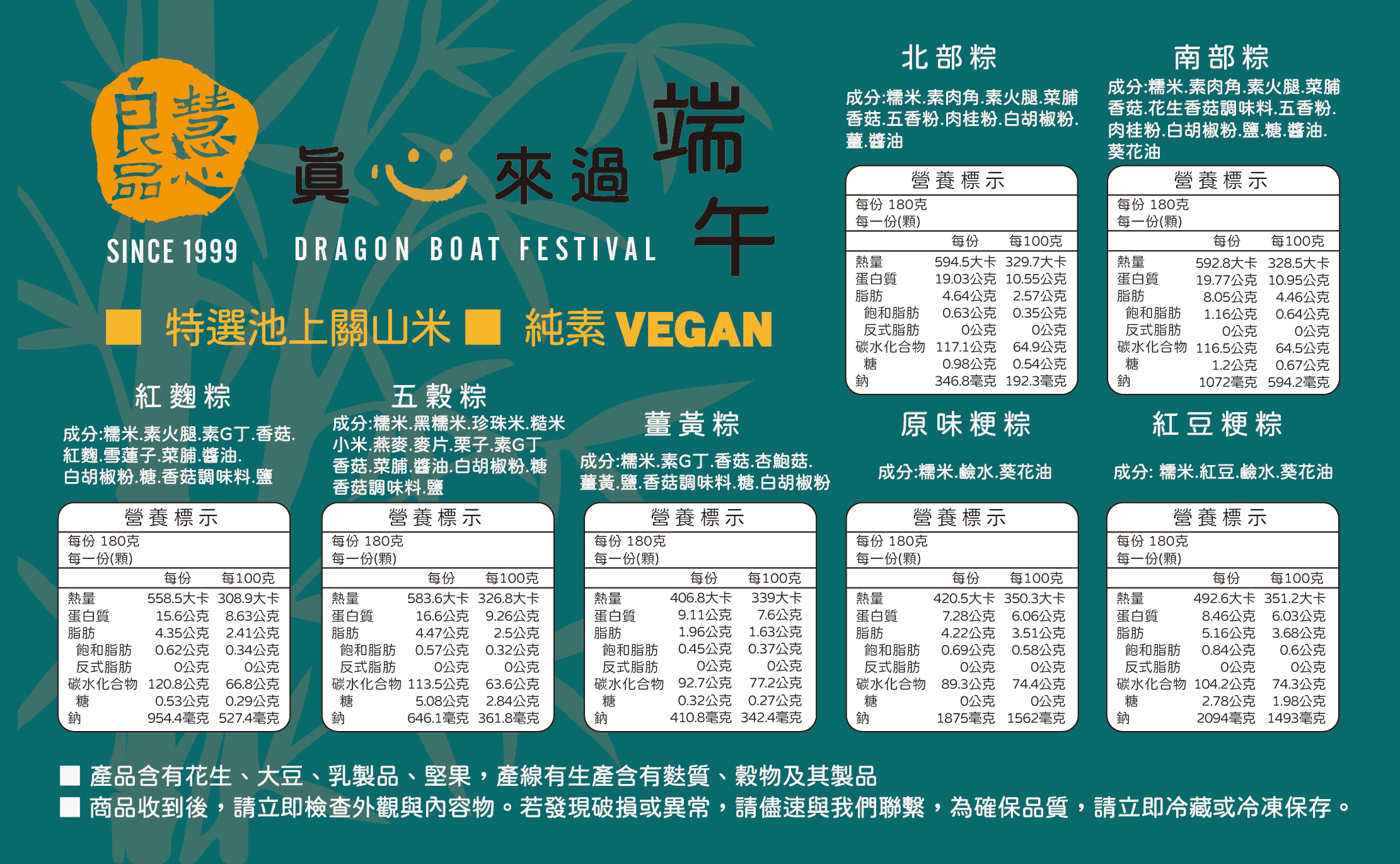 4.內容物名稱(成分):糯米.花生.香菇.素肉角.素火腿.菜脯.醬油.鹽.糖.素食香料.